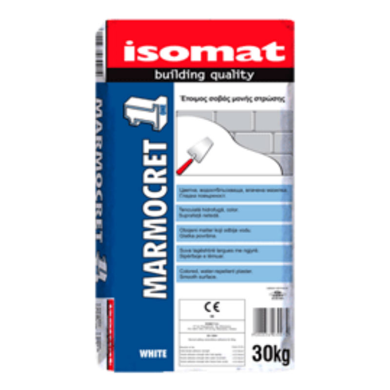 Το MARMOCRET 1 είναι ένας έτοιµος σοβάς µονής στρώσης (µαρµαροκονίαµα). Η χρήση του απαιτεί µόνο την προσθήκη νερού. Αντικαθιστά τις δύο τελευταίες στρώσεις (βασική και τελική) του κλασικού τρόπου σοβατίσµατος σε πάχος έως 3 cm.